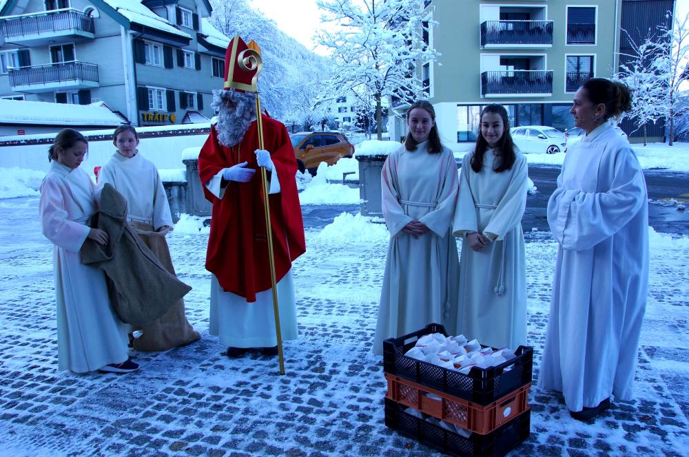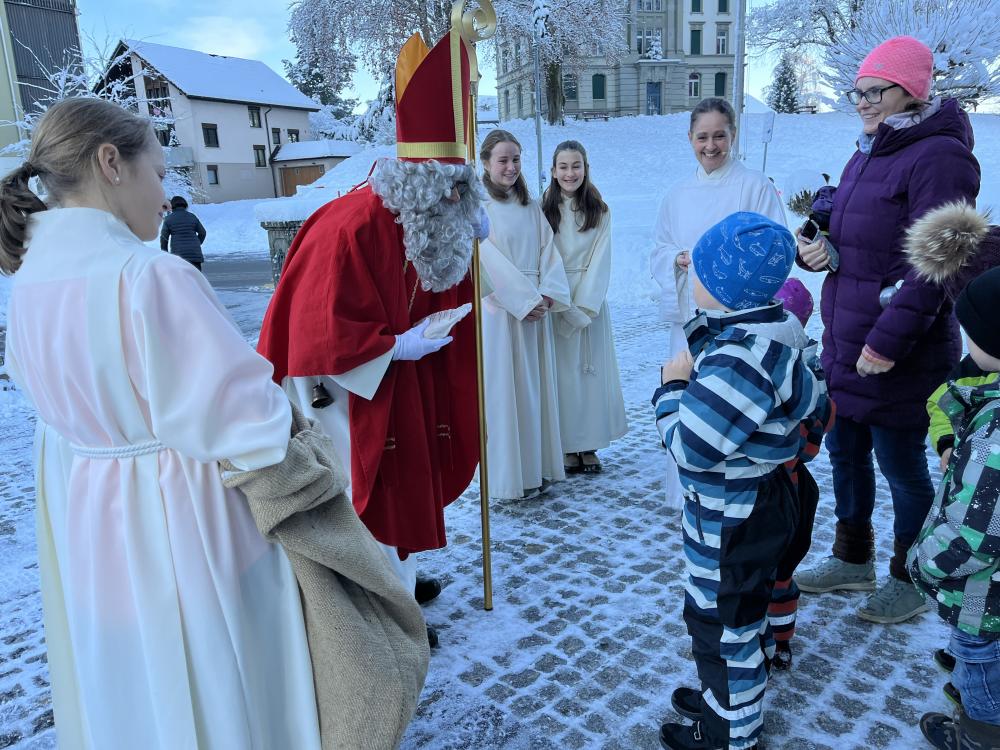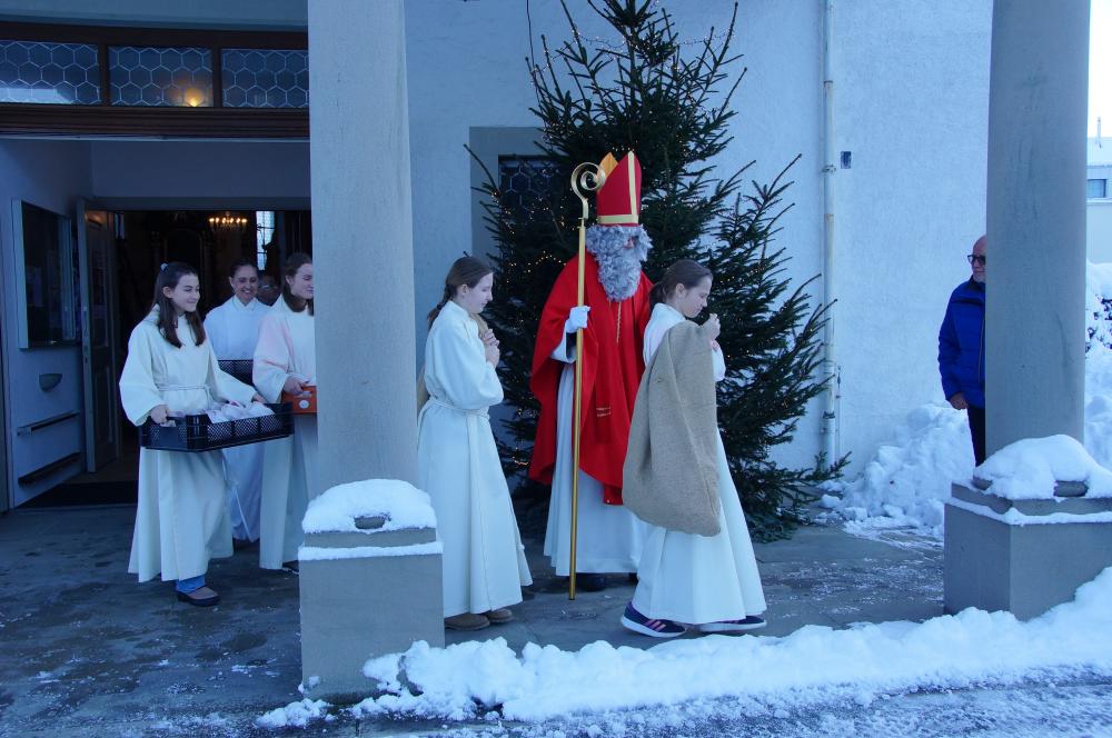 Bei unserem Familiengottesdienst war der hl. Nikolaus nicht nur bei uns zu Besuch, sondern feierte unseren Gottesdienst gleich mit. Er hat uns von seinen guten Taten damals in Myra erzählt, und anschliessend an unsere Gottesdienstfeier sowohl Kinder wie auch Erwachsene mit einem Grittibänz beschenkt.