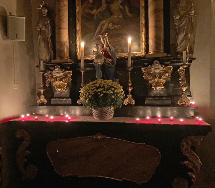 Stattdessen trug der warme Schein unzähliger Kerzen während unserer Allerseelenandacht zur besinnlichen Stimmung bei. In unserer gut besuchten Feier haben wir über die Verbindung ‚von Herz zu Herz‘ mit unseren Lieben über den Tod hinaus nachgedacht.