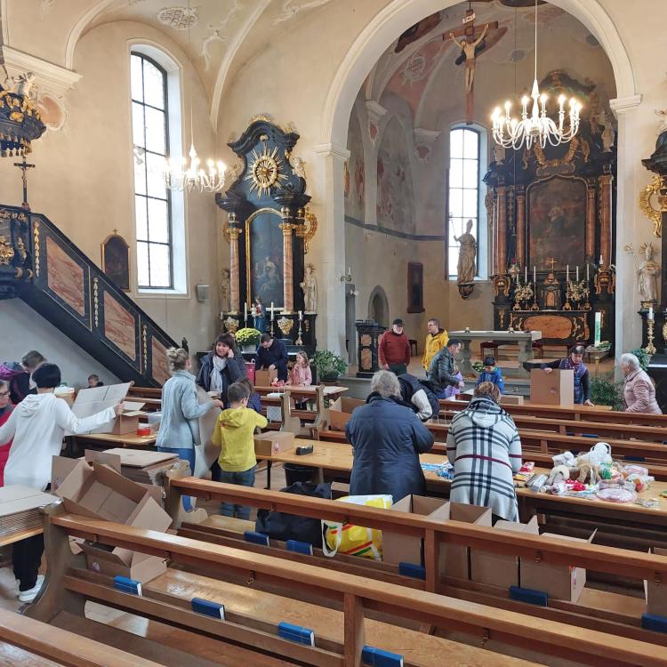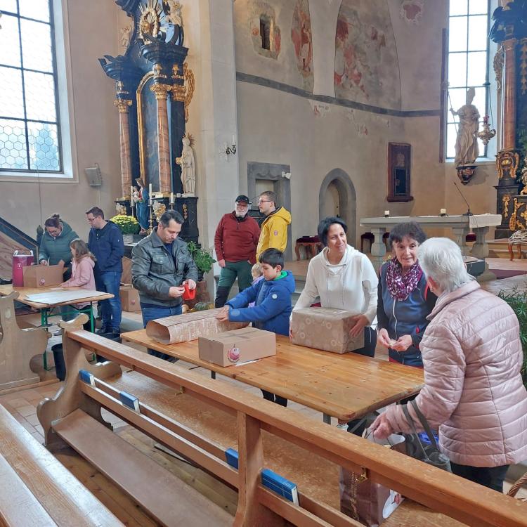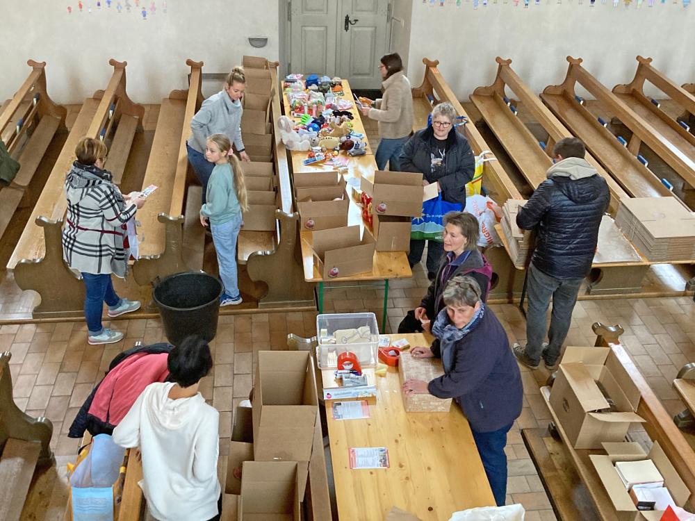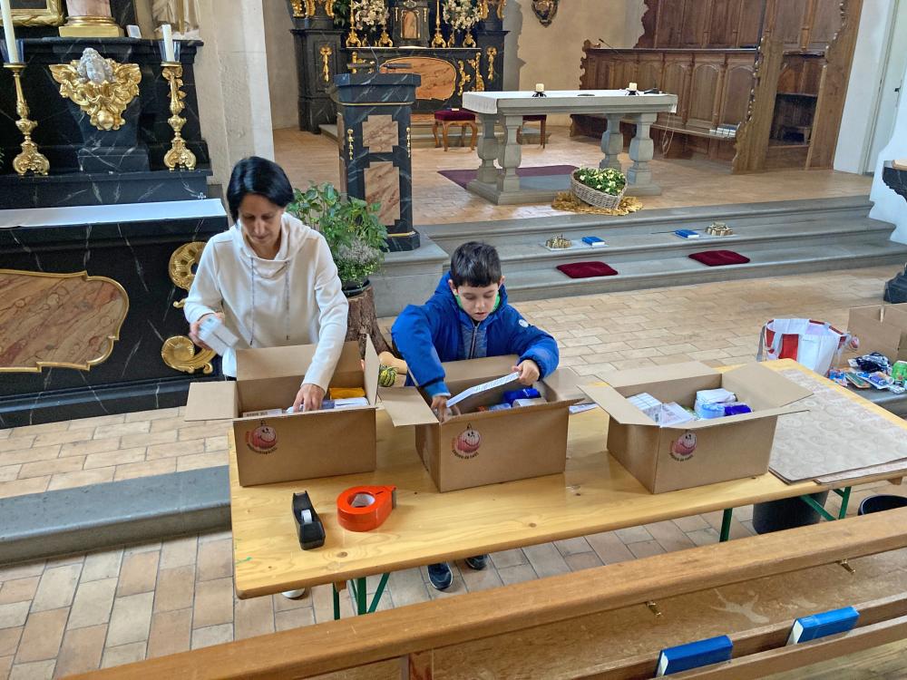 Unsere Pfarrei hat sich dieses Jahr zum zweiten Mal an dieser Aktion beteiligt. Es war ein wunderschönes Erlebnis, wie Jung und Alt, Kinder und Erwachsene, Frauen und Männer zusammen die Päckli gepackt und sich dabei unterhalten und ausgetauscht haben. Die Sensibilität für die Notleidenden und das Bedürfnis ein bisschen Freude in deren Leben zu bringen war spürbar.