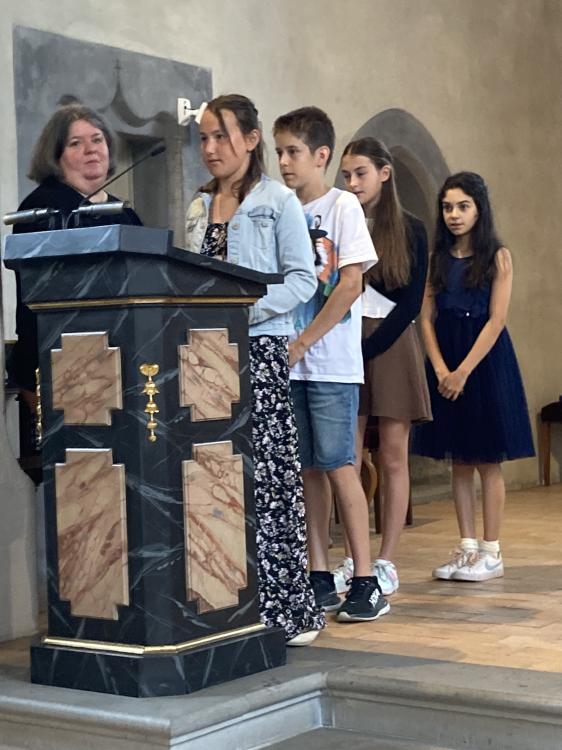 Im Familiengottesdienst vom 2. Juli haben unsere 6. Klässler auf ihre vergangenen Schuljahre im Schulhaus Dorf und speziell auf den Religionsunterricht zurückgeblickt.