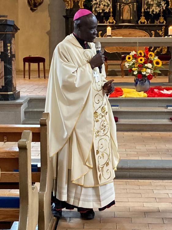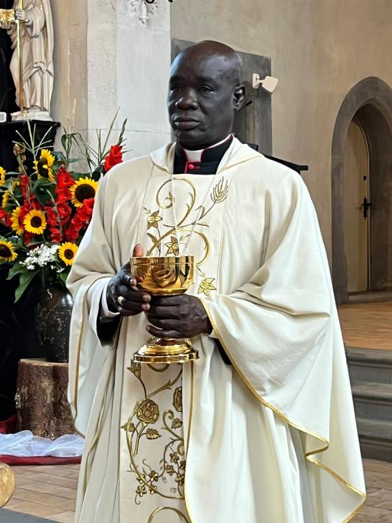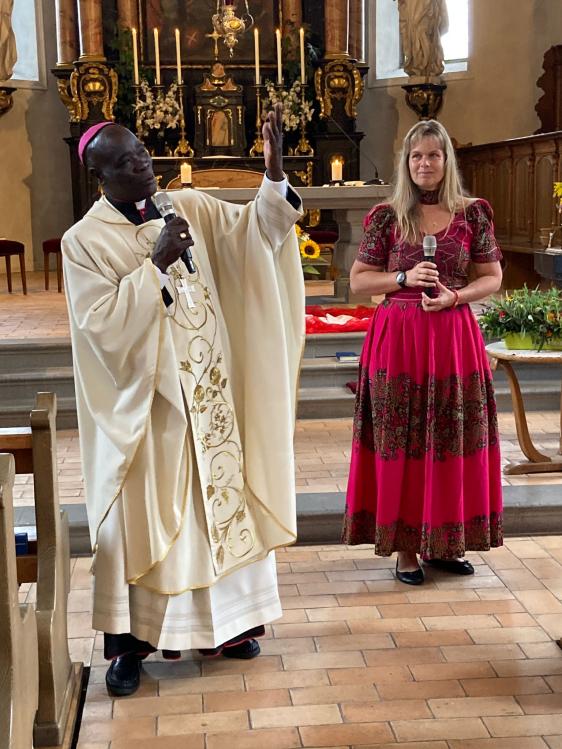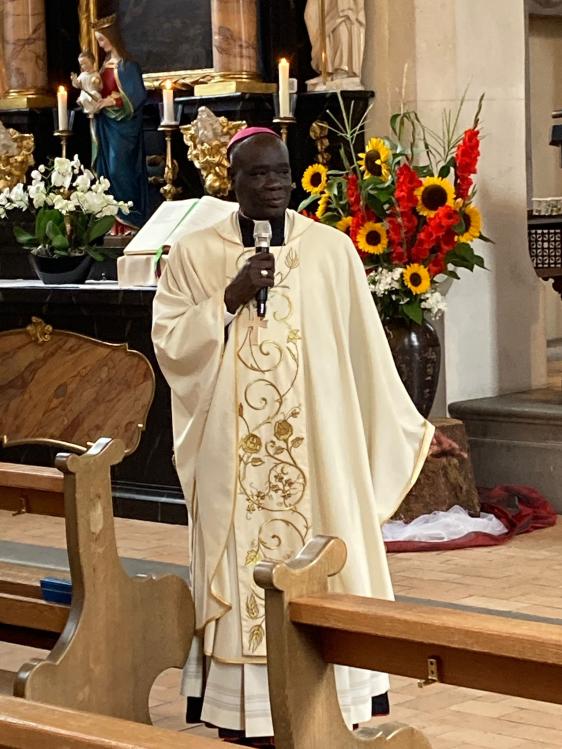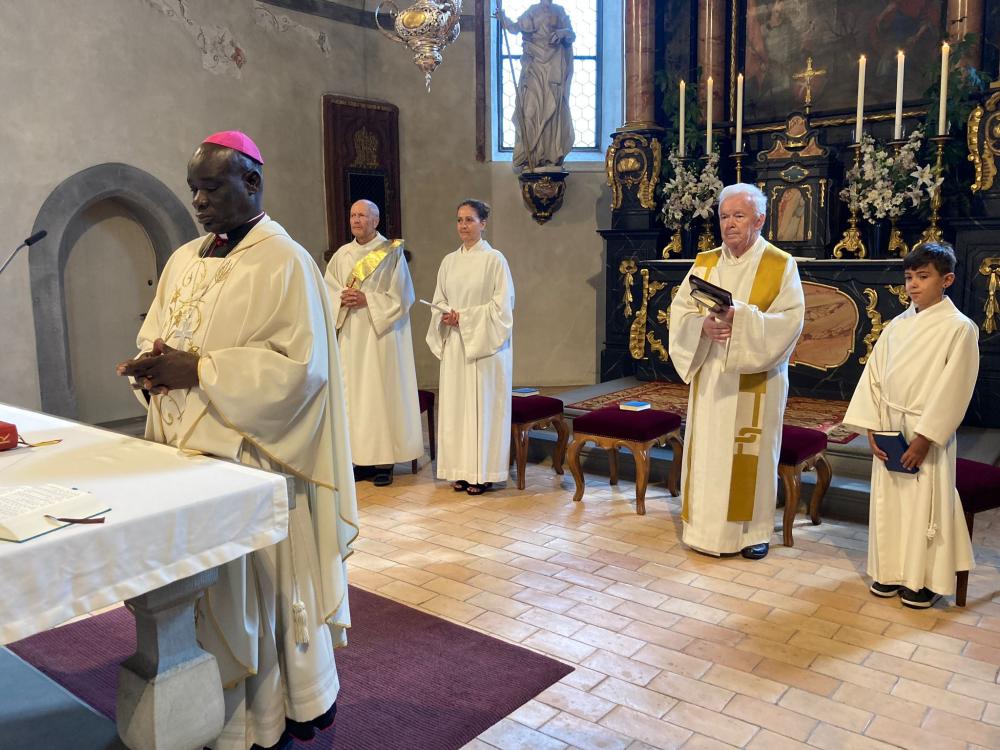Am 15. August 23, zum Fest Maria Himmelfahrt, beehrte uns Monseigneur Barthélemy Yaouda aus Yagoua, Bischof in Nordkamerun mit seinem Besuch. In seiner Predigt erzählte er, wie das Geld, das am Suppentag für das Hilfswerk 'Ashia Kamerun' von Katja und Felix Bruhin in der Pfarrei Schübelbach gesammelt wurde, sinnvoll eingesetzt wird und den Ärmsten in Kamerun zu gute kommt.