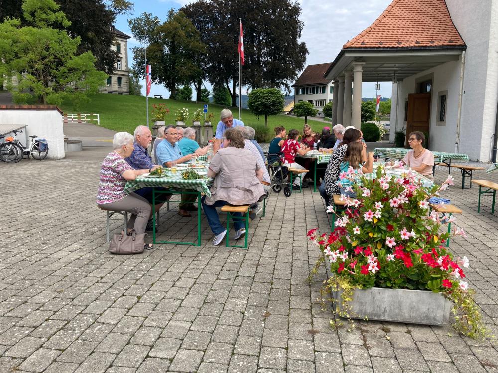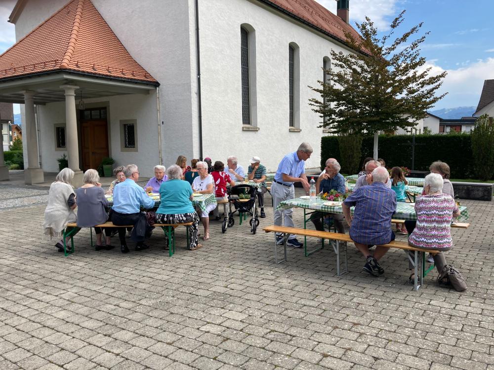 Zum Apéro, welcher von der Spurgruppe organisiert wurde, trafen sich alle nach dem Gottesdienst zum gemütlichen Beisammensein.
