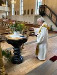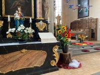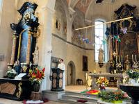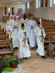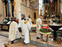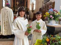 Am Schluss des Festgottesdienstes wurden Kräuter und Blumen gesegnet, welche die Ministranten an die Gottesdienstbesucherinnen und -besucher verteilten.