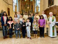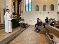 Es war eine Freude in die schön geschmückte Kirche einzutreten, alle waren willkommen. 'Willkommen' heisst auch das Jahresmotto, das in der Erstkommunion und in der Firmung wieder aufgegriffen wird. Die beiden Katechetinnen Marianne Keusch und Rosi Sciullo gestalteten den Gottesdienst zusammen mit Erika Rauchenstein.