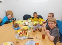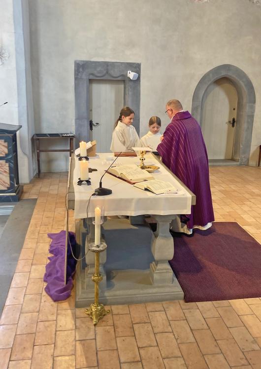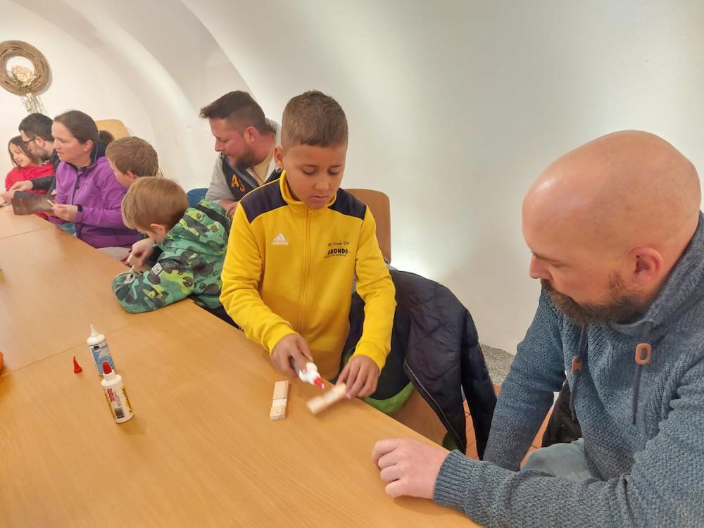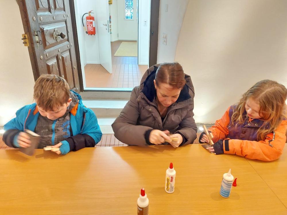 Die Vorbereitungen auf den Weissen Sonntag laufen auf Hochtouren. Den wesentlichen Teil tragen jedoch nicht wir, sondern die Kinder selbst, ihre Eltern, Grosseltern und Paten dazu bei. So haben wir uns mit unseren Kommunionkindern zusammen mit jemandem aus der Familie zum Eltern-Kind-Nachmittag getroffen. Im ersten Teil wurden die Lieder für den Kommuniongottesdienst geübt. Im zweiten Teil haben wir das Holzkreuz und die Dekoration für die Kirche gebastelt. Im Anschluss haben wir uns mit Mini-Sandwiches, Kuchen und Chips verpflegt und ausgetauscht.