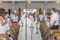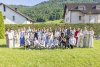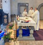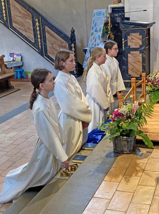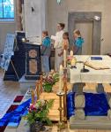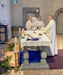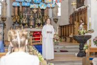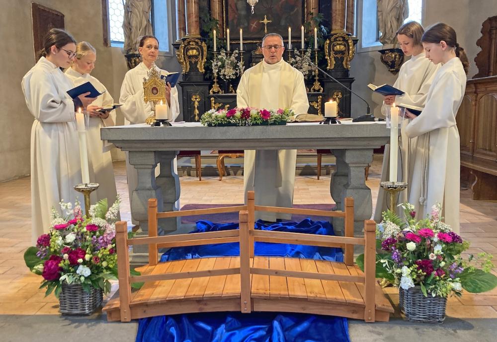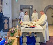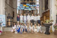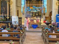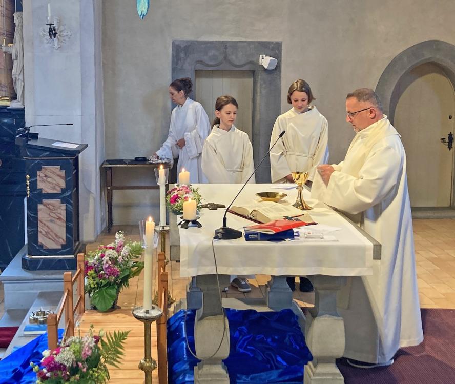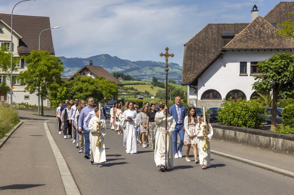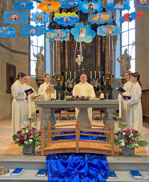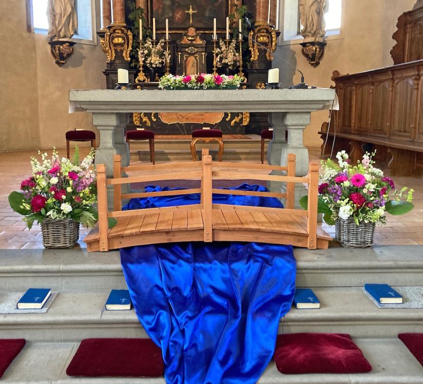 Wasser ist Leben, sei es als Eis, Flüssigkeit oder Dampf. Das Wasser in der Form von Dampf also die Wolke war unser Thema der diesjährigen Firmung. Am Samstag bei schönstem Sommerwetter waren 15 junge Menschen ein bisschen nervös. Nicht wegen dem Wetter oder den Wolken, sondern wegen ihrer Firmung. Generalvikar Bernhard Willi kam nach Schübelbach, um den 15 Firmandinnen und Firmanden das Sakrament der Firmung zu spenden. In der liebevoll geschmückten Kirche feierten wir einen sehr schönen Festgottesdienst, der noch lange in Erinnerung bleiben wird. Bei einem feinen Apéro fand die Festgemeinschaft Zeit für anregende Gespräche und schöne Fotos.