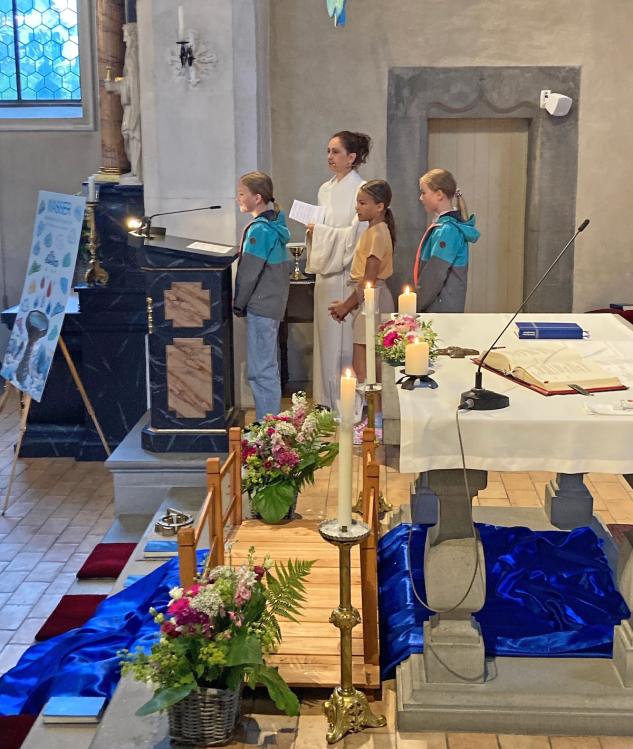 Der Schulgottesdienst wurde von Erika Rauchenstein und Josip Karas feierlich zum Thema Heiliger Geist gestaltet.