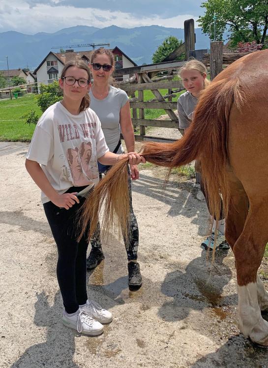 Es war sehr schön zu sehen, wie die anfänglichen Berührungsängste vor den grossen Tieren mit der Zeit zu schwinden begannen und gegenseitiges Vertrauen aufgebaut wurde. Nicht zuletzt, weil unsere Pferde Anouk und Flämmli so gut mitgemacht haben.