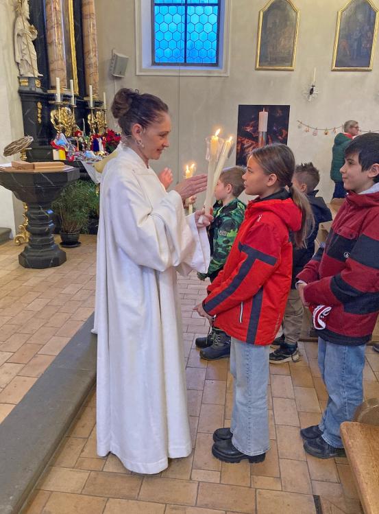 Am Schluss unserer Gottesdienstfeier haben alle Schülerinnen und Schüler den Blasiussegen erhalten.