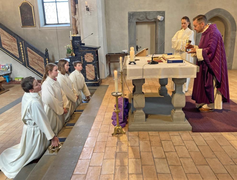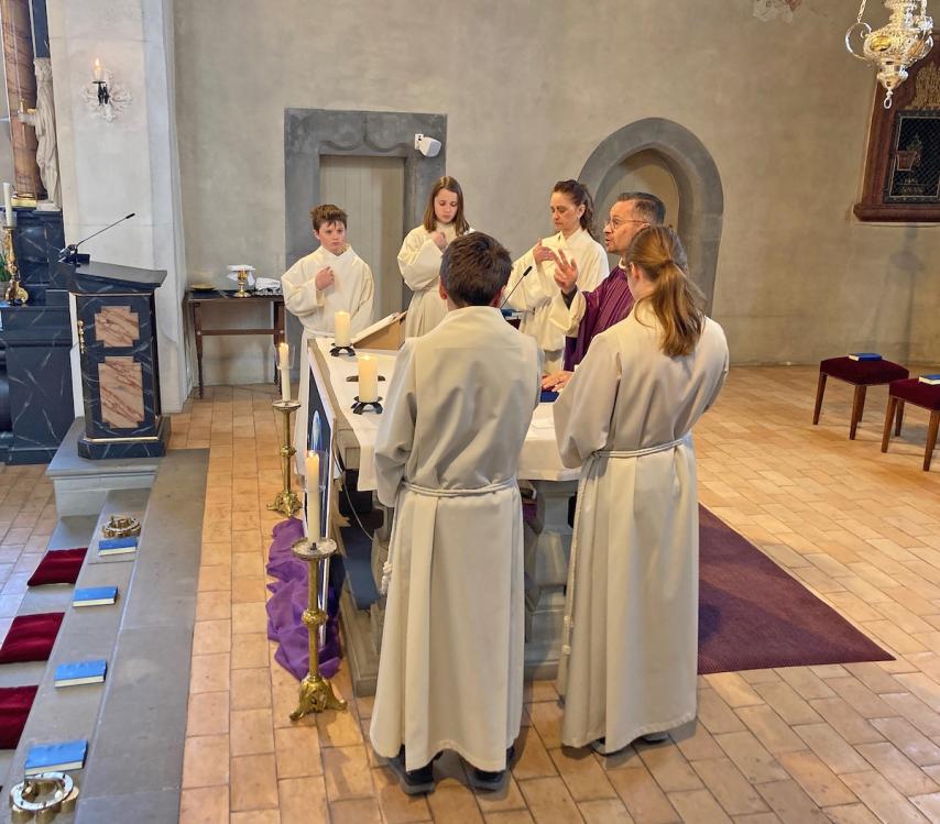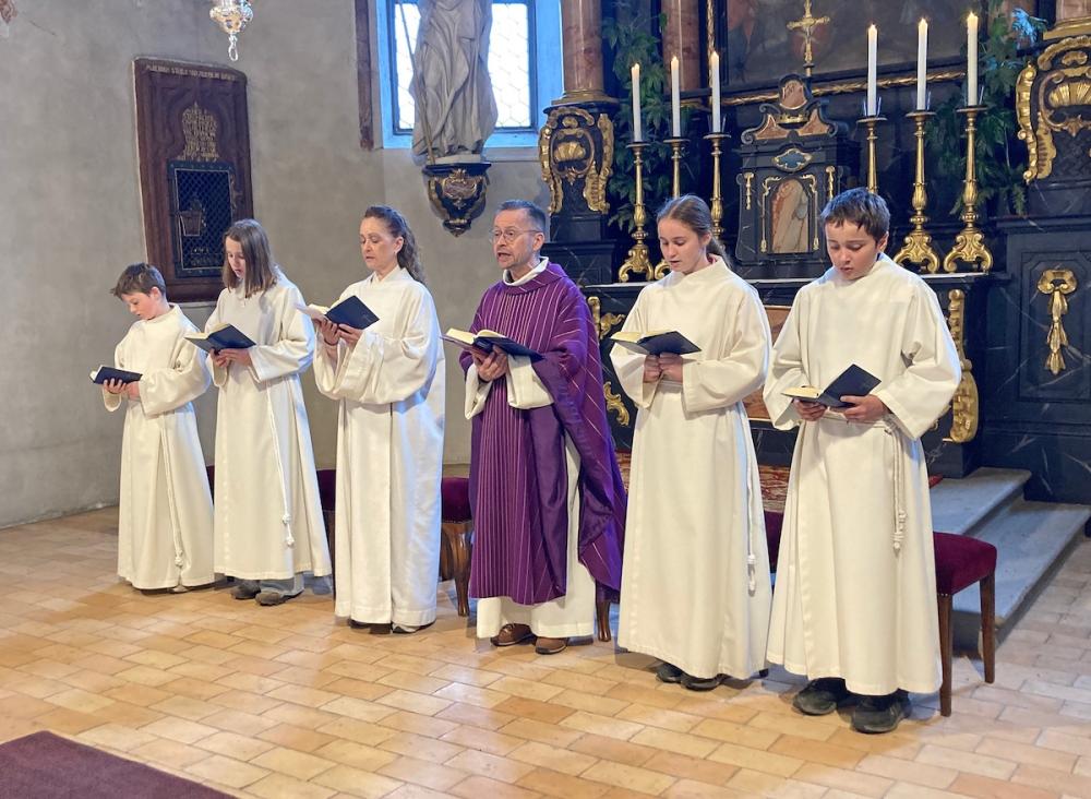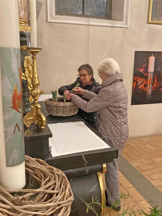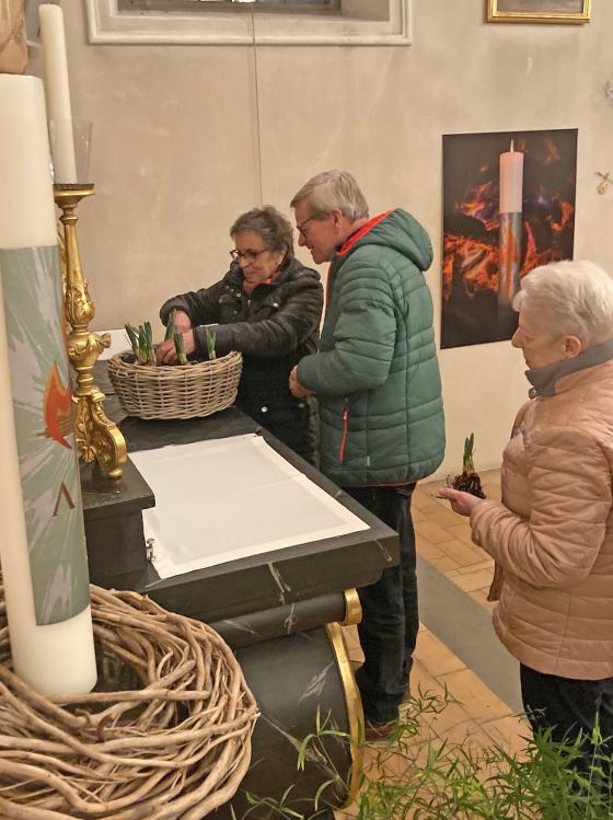 Im Wortgottesdienst zum Aschermittwoch hat uns die Spurgruppe eingeladen darüber nachzudenken, was wir aus unserem bisherigen Leben loslassen und hinter uns lassen wollen. Wie Blumenzwiebeln im Frühling aufbrechen und neues Leben hervorbringen, sollen auch wir aufbrechen und unser Leben mit all seinen Höhen und Tiefen leben. Unsere besinnlichen Gedanken haben ein Flötistinnentrio der Musikschule Obermarch sowie Hans und Astrid Schalch mit Gesang und Orgelmusik untermalt.