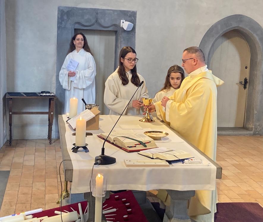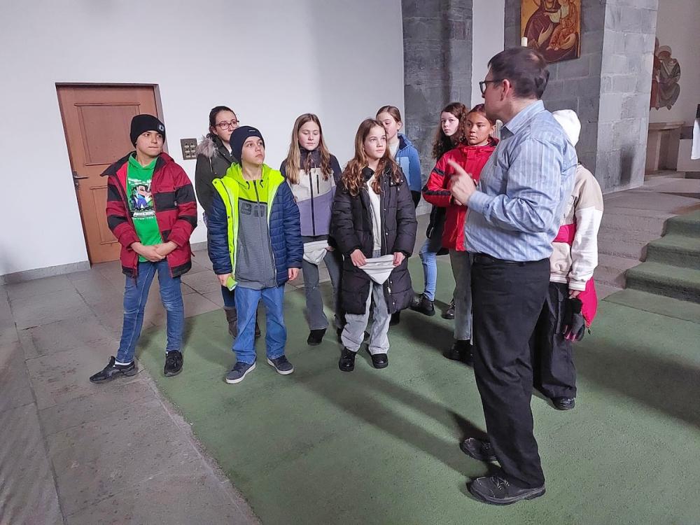 Am Mittwoch, 28. Januar machten unsere Firmandinnen und Firmanden einen weiteren Schritt auf ihrem Weg zur Firmung. Sie besuchten zusammen mit Marianne Keusch und Erika Rauchenstein unseren Firmspender, Regens Daniel Krieg in Chur. Er zeigte uns das Priesterseminar und was dort gemacht wird. Nach einer sehr interessanten Führung konnten wir noch allfällige Fragen klären. Nach einem Zvieri ging es dann wieder nach Hause. Es war sehr interessant und wir freuen uns auf die Firmung.