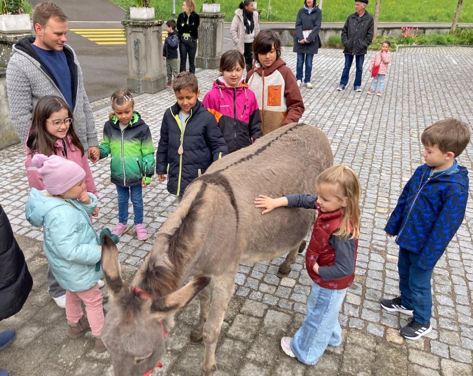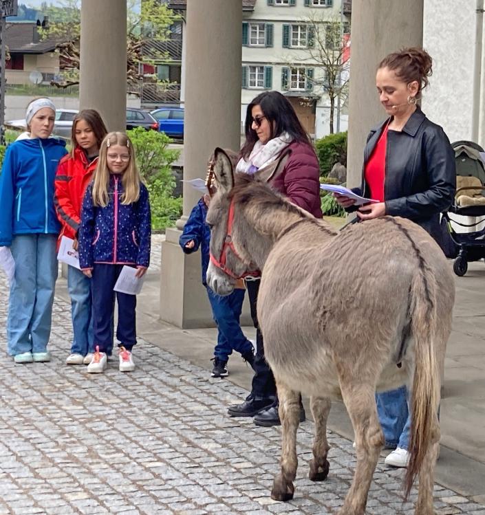 Dargestellt wurde Lollo von der Eselstute Alexa, deren Besitzer Urs und Wisi Schnellmann aus Wangen sind. Ganz herzlichen Dank an Alexa und ihren Besitzern für ihren Besuch in Schübelbach.