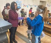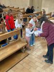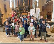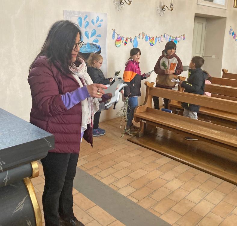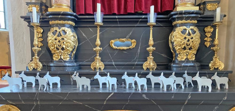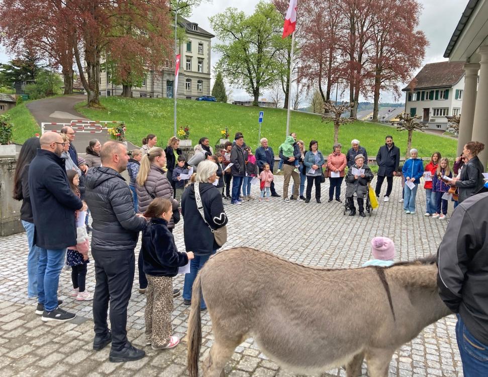Unsere Katechtinnen Rosi Sciullo und Beatrice Honegger haben im Vorfeld mit ihren Religionskindern aus der 1. & 2. Klasse Esel gebastelt, die Lieder geübt und die Andacht mitvorbereitet. Frau Sciullo hat sogar selbst für alle übrigen Kinder kleine, süsse Eselchen gebastelt.