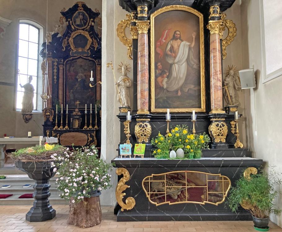 Es ist eine Augenweide, die Osterdekoration in und um die Kirche zu bestaunen. Vielen Dank Hansueli mit seinen Helferinnen.