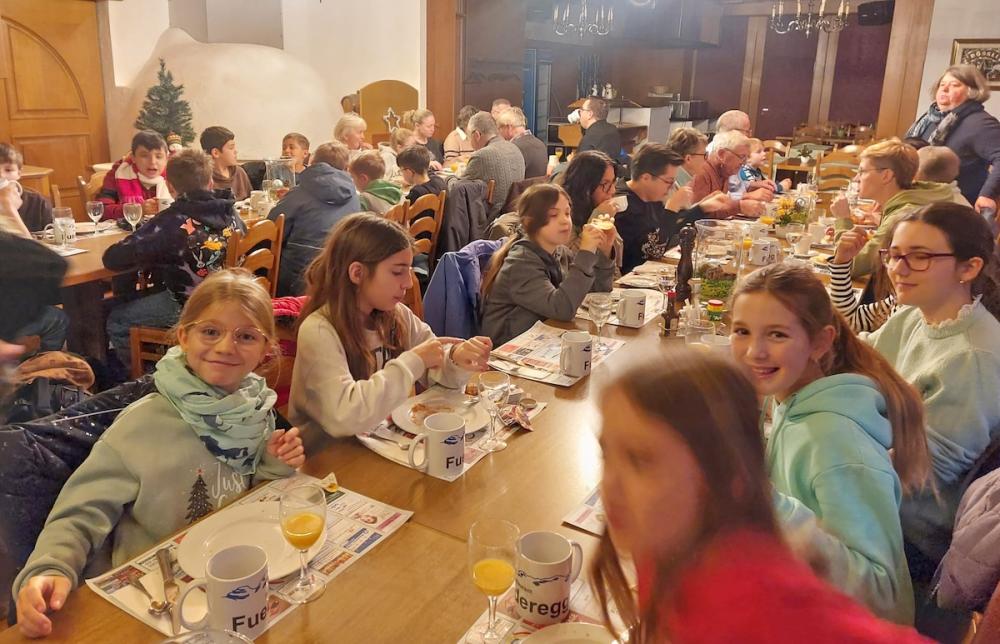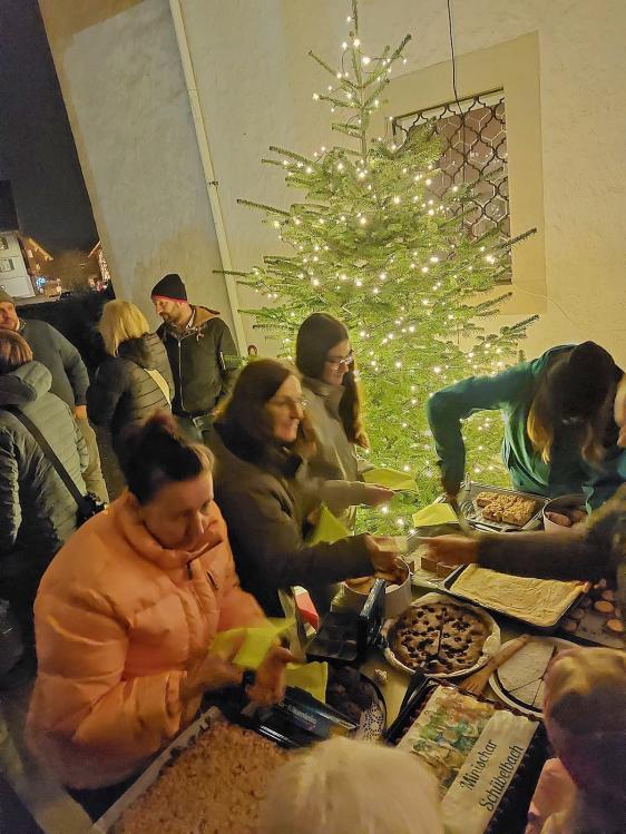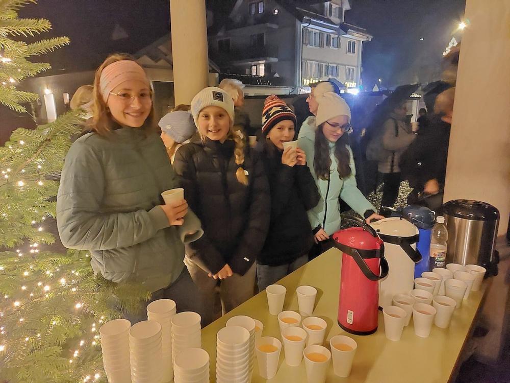 Im Anschluss verkauften unsere Minis selbstgebackene Kuchen und schenkten Punsch aus. Der stolze Erlös von Fr. 425.— geht zugunsten der Romreise unserer Minis im März.