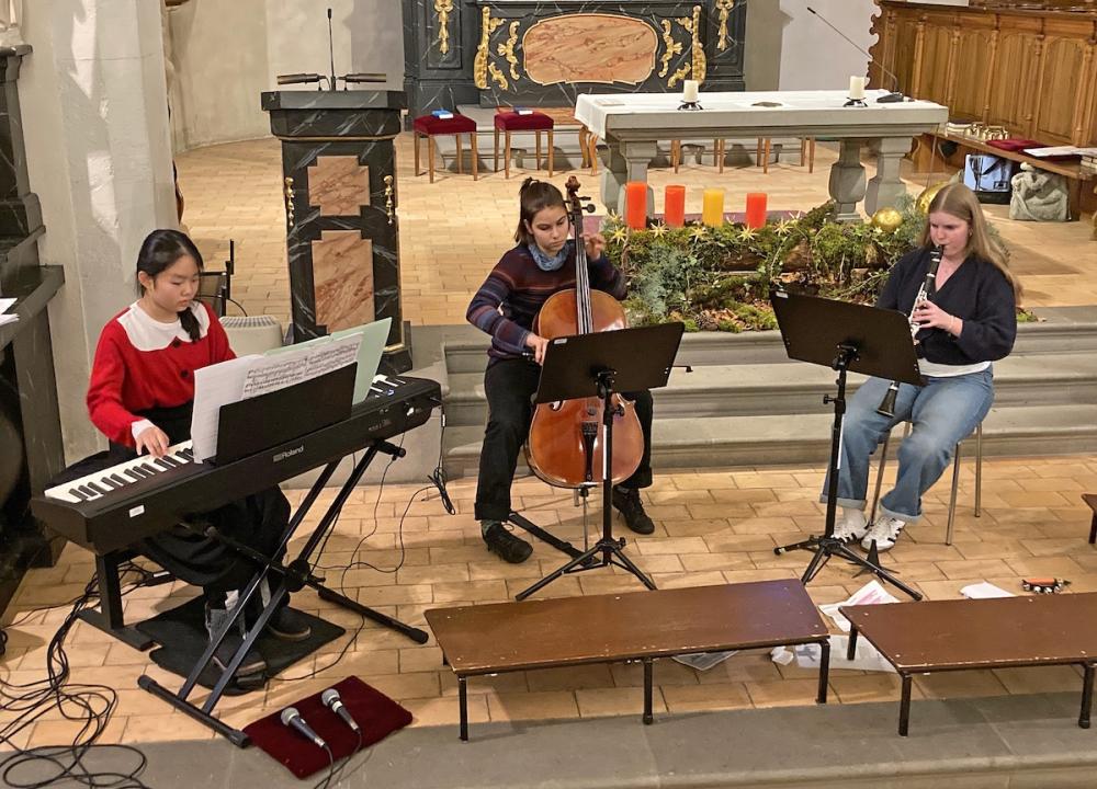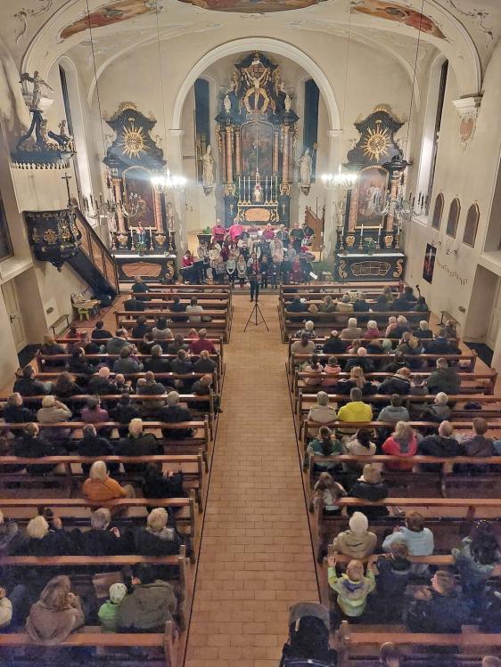 Am Sonntag, 7. Dezember durften wir in unserer Pfarrkirche das Adventskonzert des Kinderchors der Musikschule Obermarch unter der Leitung von Irene Bendel erleben. Unterstützt wurden sie dabei vom Donnerweidchor unter der Leitung von Ruedi Sutter und einigen jungen Musiktalenten mit ihren Instrumenten. Die vielen jungen und etwas älteren Stimmen begeisterten die Zuhörer*innen.
