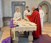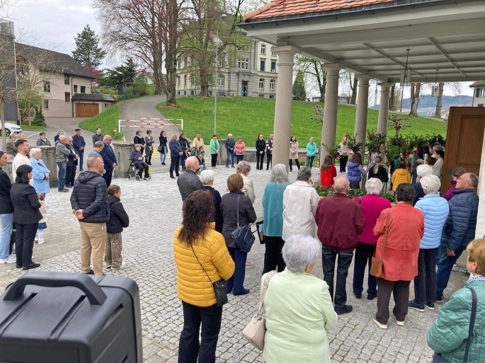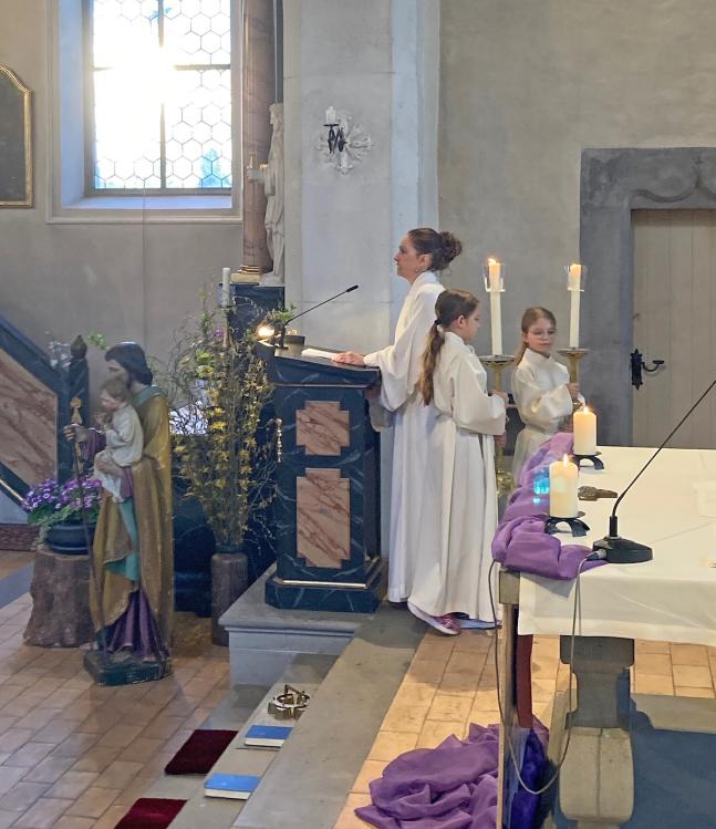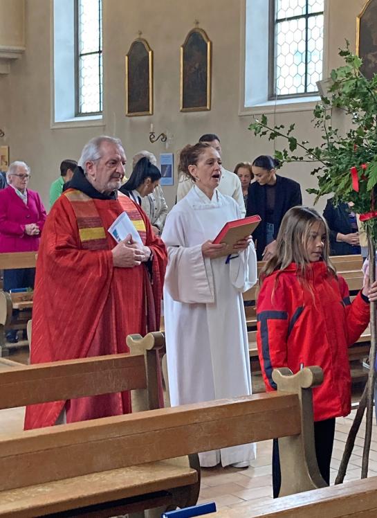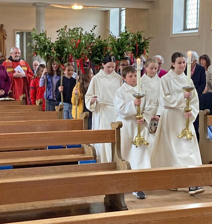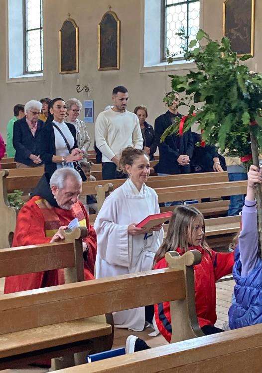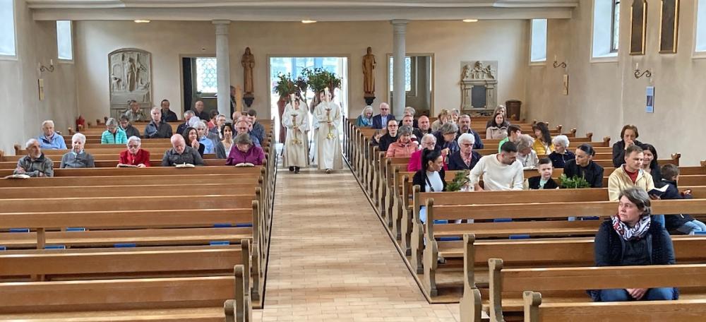 Der feierliche Palmsonntagsgottesdienst begann wie üblich vor der Kirche mit der Segnung der Palmzweige und dem anschliessenden Einzug in die Kirche. Die Leidensgeschichte versetzte uns in vergangene Zeiten und hat uns die Geschehnisse damals in Jerusalem ein bisschen nähergebracht. P. Joseph Maria aus Uznach feierte mit uns die Eucharistie.