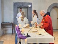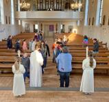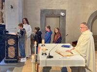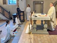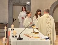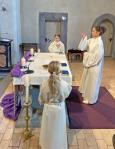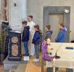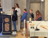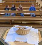 Zusammen mit unserer kleinen Schar Kommunionkinder haben wir das letzte Abendmahl Jesu am Hohen Donnerstag gefeiert und dabei an den Abschied Jesus von seinen Freunden gedacht.