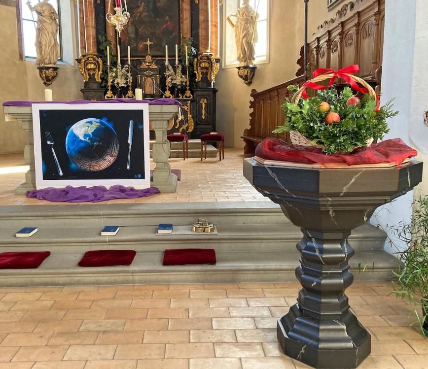 In den Schulgottesdiensten thematisieren wir jeweils die Feste und Zeiten des Kirchenjahres und heilige Personen, deren Gedenktage wir feiern. In der Fastenzeit haben wir einen Blick auf das Hungertuch geworfen. Wir haben uns die Frage gestellt, wie es sich anfühlt Hunger zu haben, was hungern für einen grossen Teil der Weltbevölkerung heisst und wie wir unsere Dankbarkeit dafür zeigen können, dass wir keinen Hunger leiden müssen.
