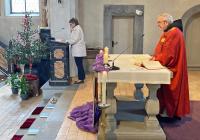 Zum Zeichen, dass nun der Leidensweg Jesu beginnt, wurde das Heilige Brot aus dem Tabernakel ins Sakramentenhäusschen übertragen und die Kirchenglocken sind nach dem Gloria verstummt.