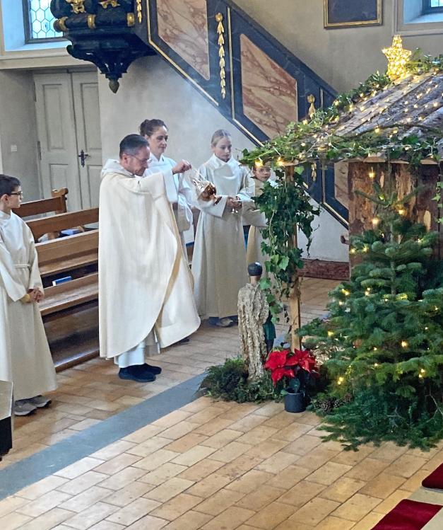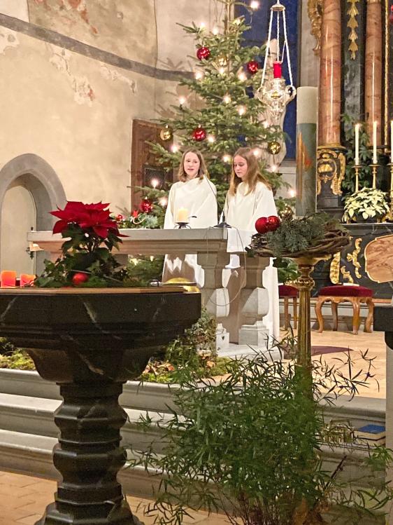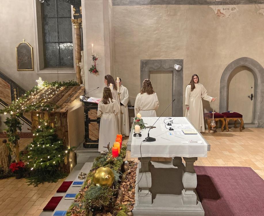 Der Mitternachtsgottesdienst ist der Höhepunkt der Weihnachtsfeierlichkeiten. Wir feiern die Geburt Jesu in dieser Heiligen Nacht. Wesentlich zur Feierlichkeit dieses Gottesdienstes beigetragen haben Adeline Marty, Stefan Marty und Marina Fleischmann mit ihrer Musik und ihrem Gesang. Aber auch die in warmes Kerzenlicht gehüllte Kirche und die vielen Menschen die im Vorder- und Hintergrund mitgewirkt und mitgefeiert haben.