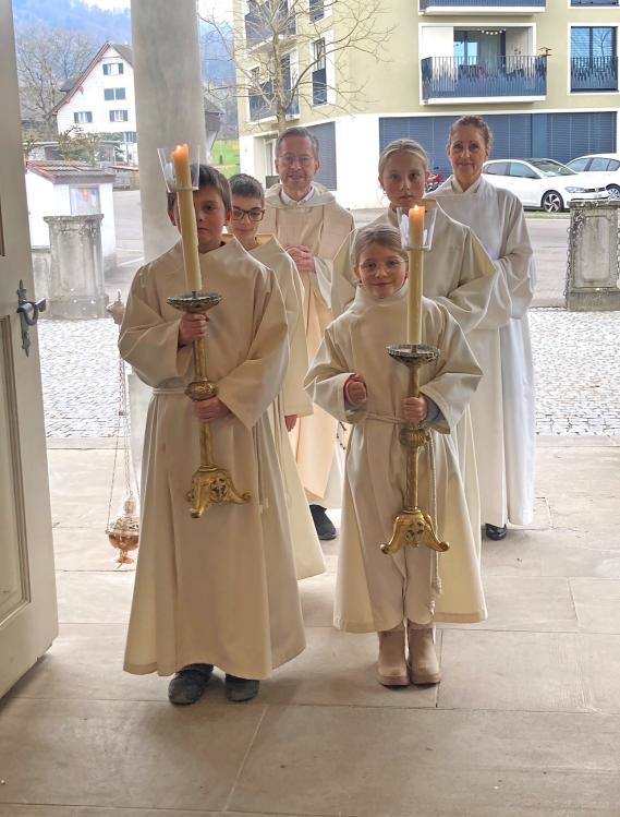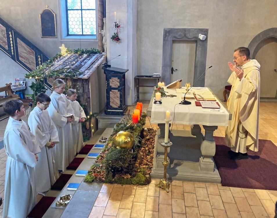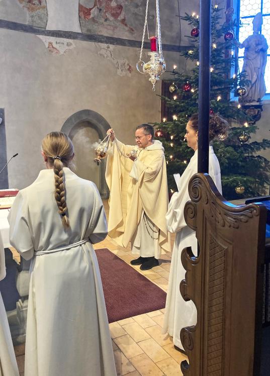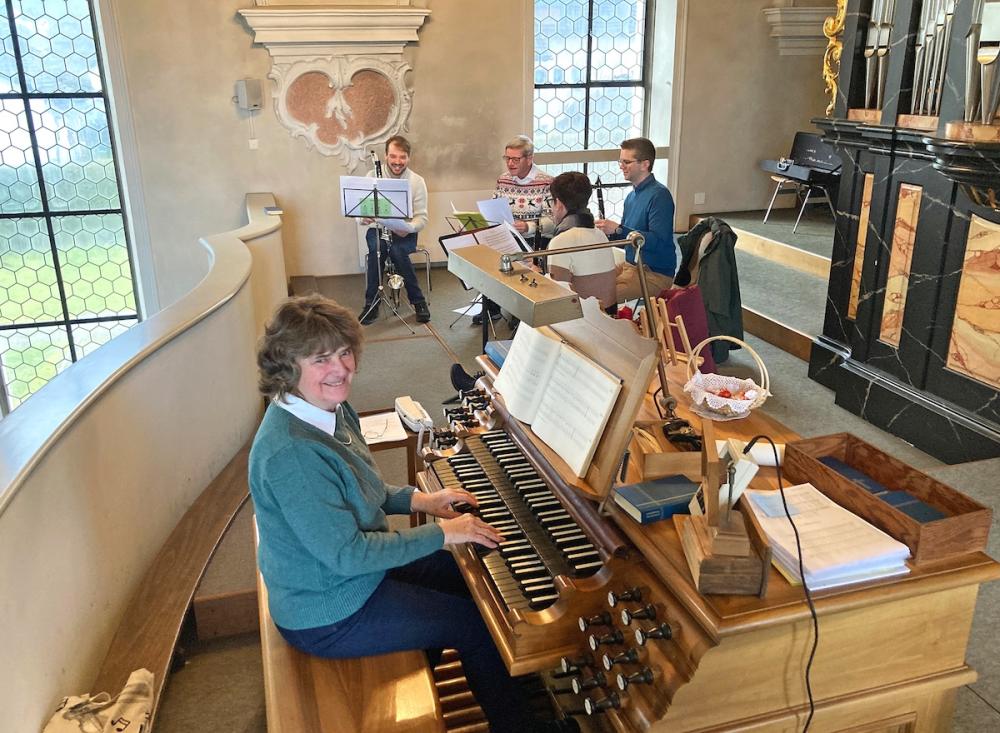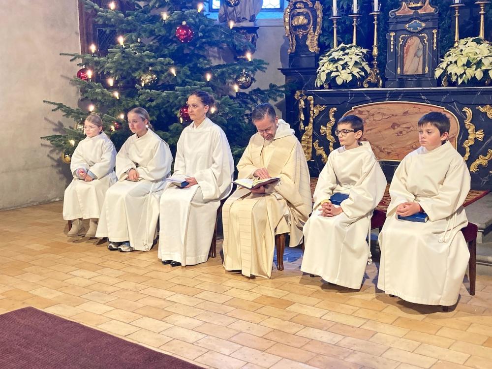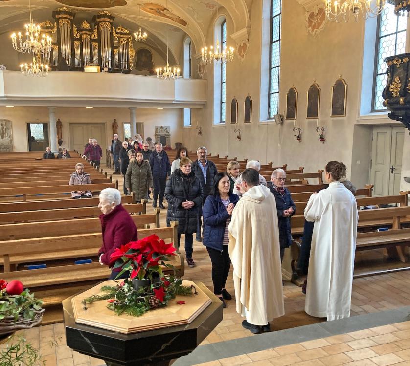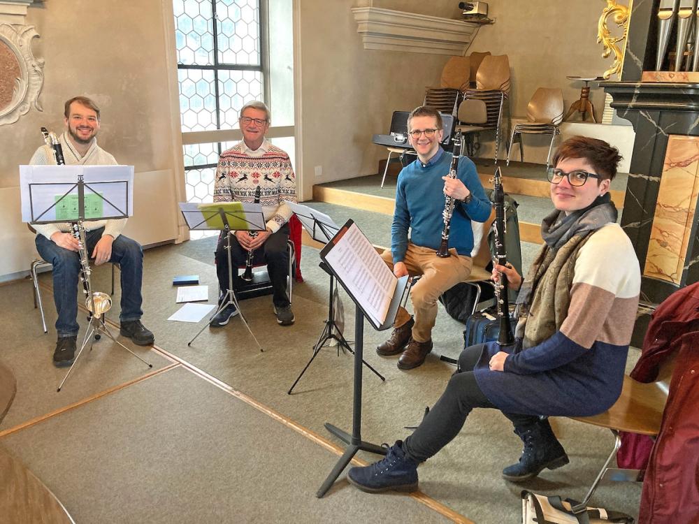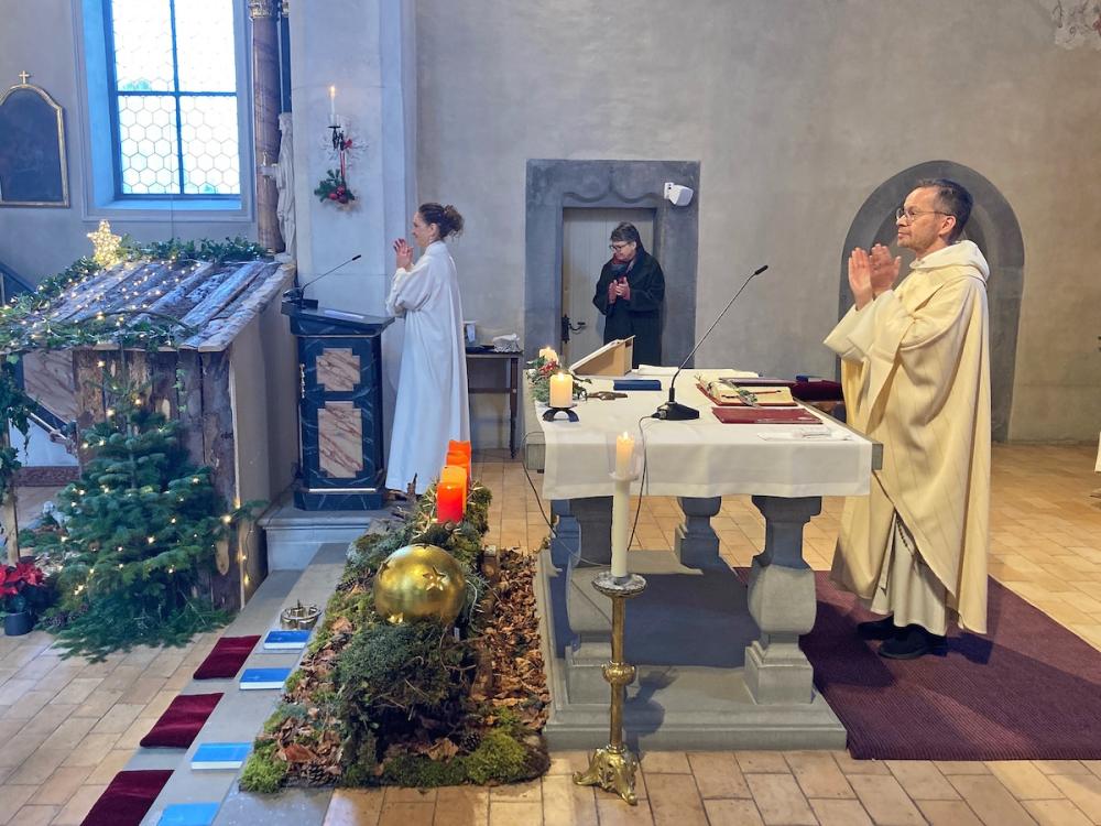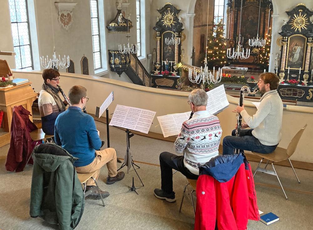 Zum Festgottesdienst am Weihnachtstag umrahmte den von Pater Uwe und Erika Rauchenstein geleiteten Gottesdienst das Schalch-Ensemble mit ihren vier Klarinetten (Alexandra, Thomas, Markus und Hans). An der Orgel spielte Astrid Schalch.