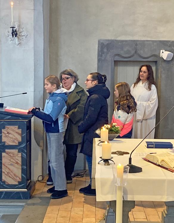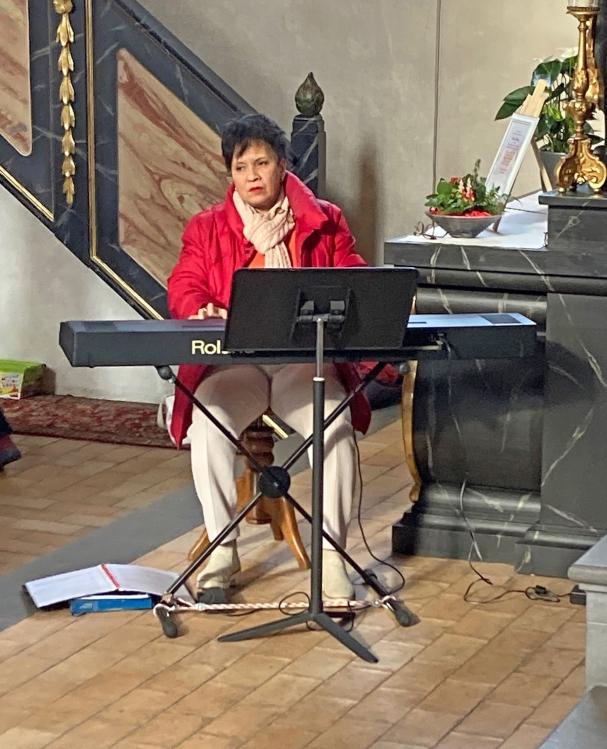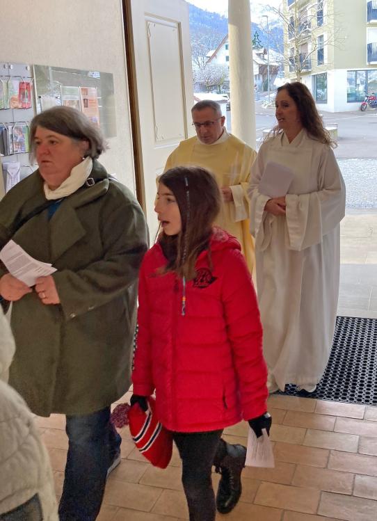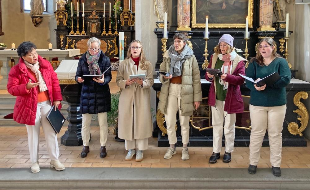 Dass Adeline Marty und ihre Sänger*innen Feuer und Flamme für die Musik sind, haben sie mit dem eindrücklichen Klang ihrer wunderschönen Stimmen bewiesen und unserer Gottesdienstfeier eine besonders stimmungsvolle Note gegeben.