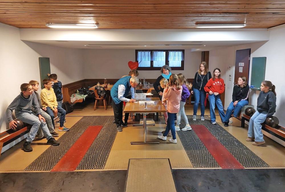 Nach der Feier in der Kirche waren alle Minis zu einer feinen Pizza ins Rössli eingeladen. Beim Kegeln war diese schnell verdaut und es gab im Bauch wieder Platz für ein Dessert.