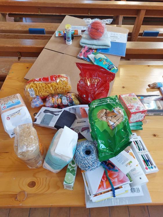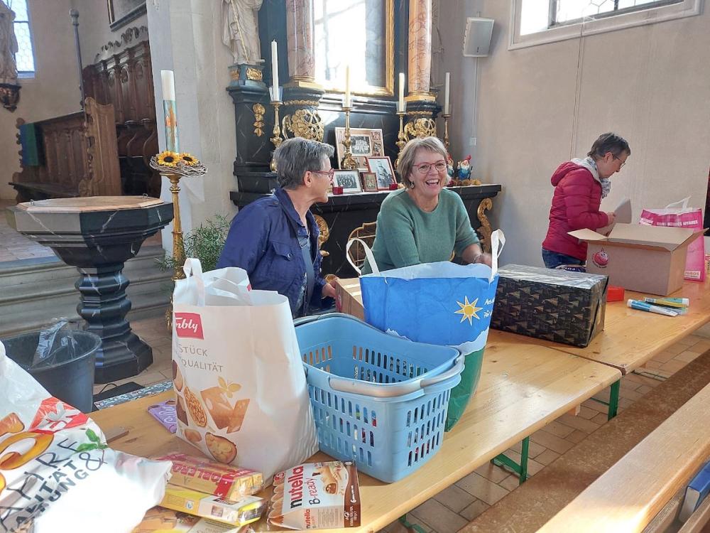 Schenken macht Freude! Das dies so ist, hat sich bei unserer Weihnachtspäckliaktion auch dieses Jahr wieder gezeigt. Bekannte und unbekannte, junge und etwas ältere Menschen fanden sich nach und nach mit ihren gefüllten Einkaufstaschen am Samstagnachmittag in unserer Kirche ein. Einige haben ihr(e) Weihnachtspäckli selbst eingepackt, andere waren froh um die Hilfe der fleissigen Packerinnen der Frauengemeinschaft Schübelbach. So kamen 67 Päckli zusammen, die armen Menschen im Osten Europas ein bisschen Weihnachtsfreude in ihr karges Leben bringen werden. Beim gemütlichen Zusammensein mit Kaffee, Glühwein, Kuchen und Guezli kam es im Pfarrhaus zu angeregten und interessanten Gesprächen.