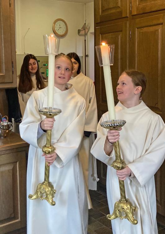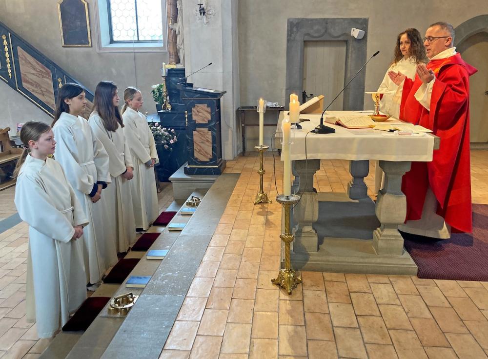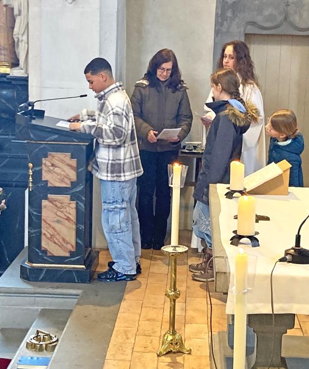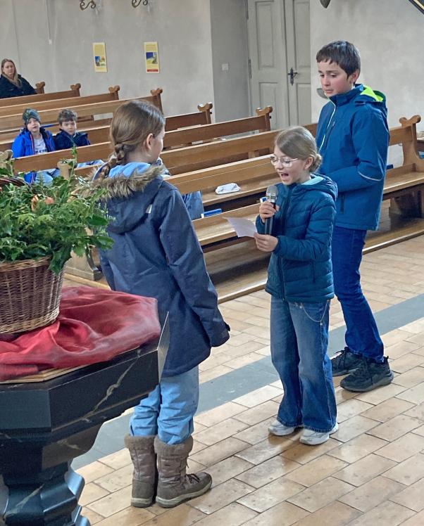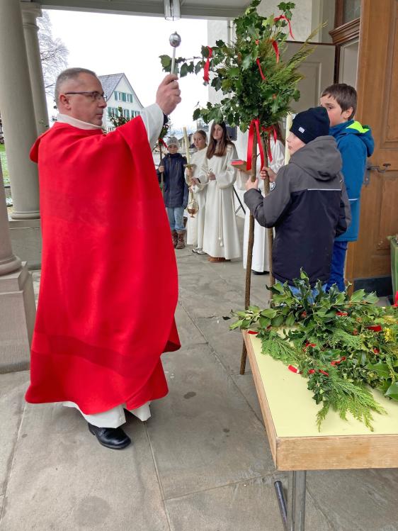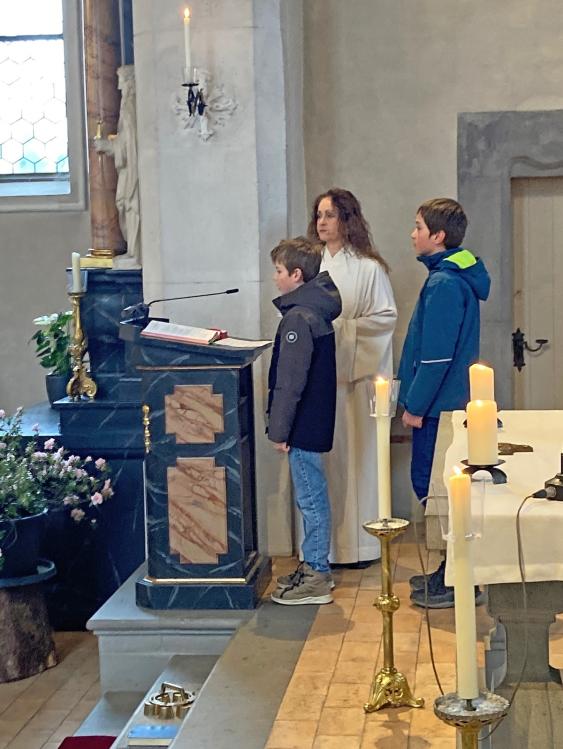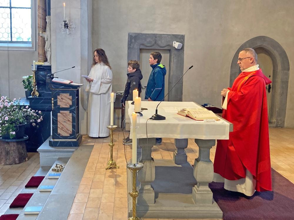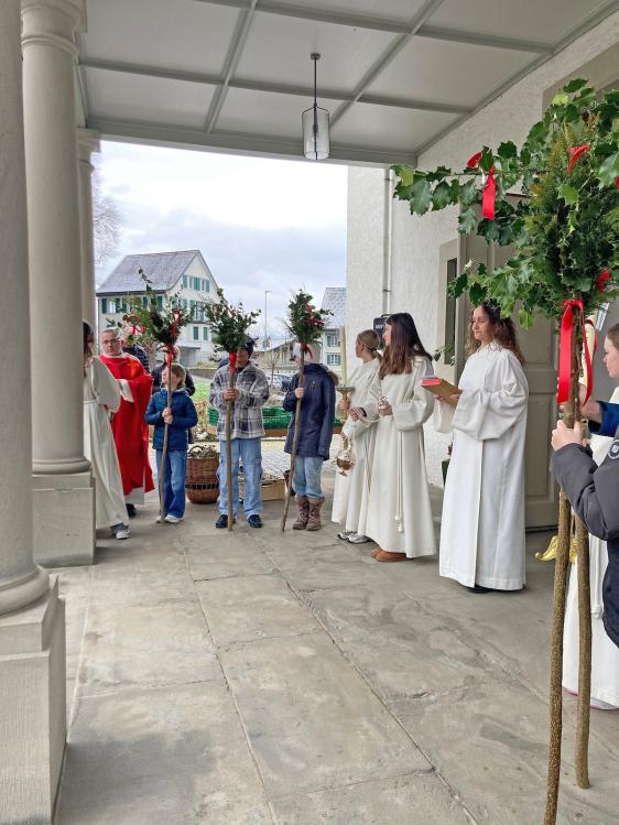 Bei winterlichem Wetter durften wir zusammen mit unseren 5. Klässlern, einigen Familien und zahlreichen Gläubigen den Palmsonntag feiern. Die ‘Loqui Lux’ – Musiker*innen unter der Leitung von Hans Schalch, haben unseren Gottesdienst würdig und feierlich umrahmt und mitgestaltet.
