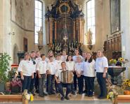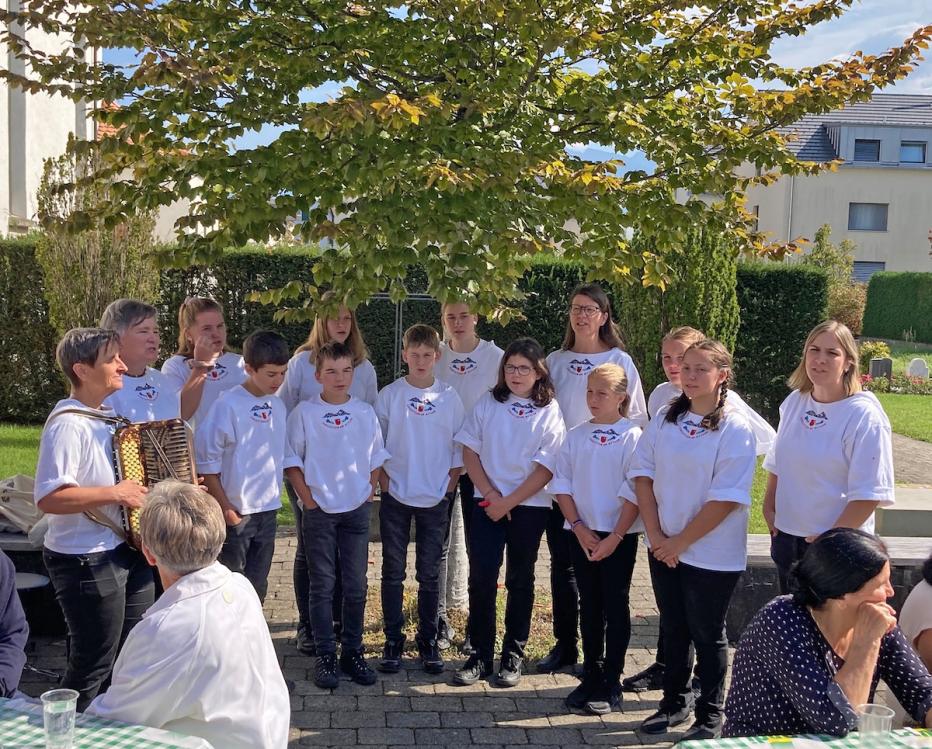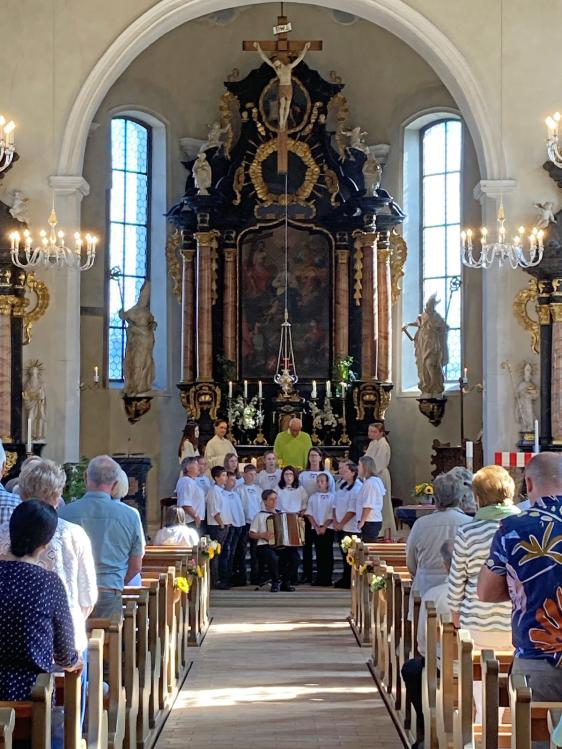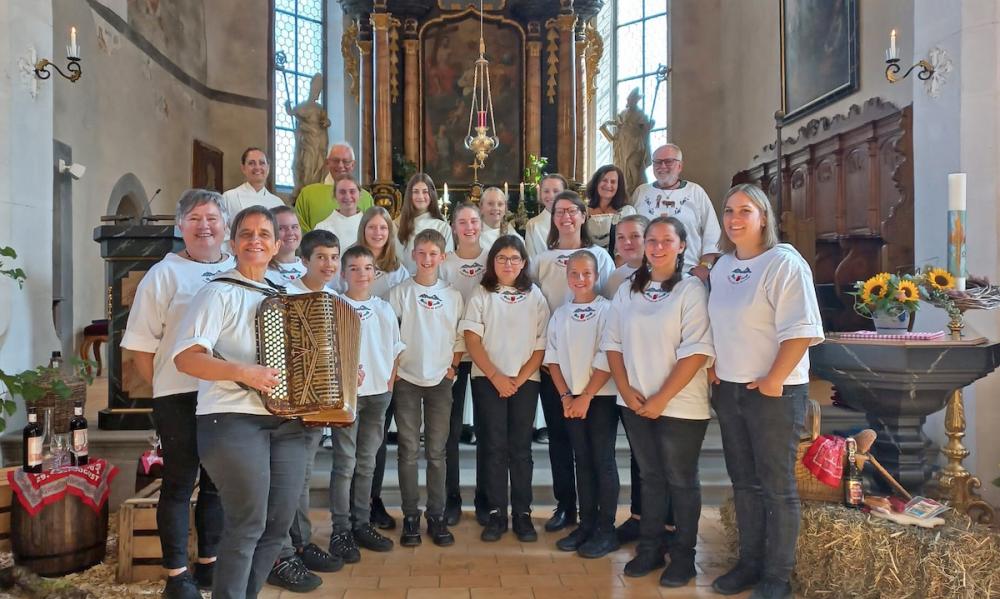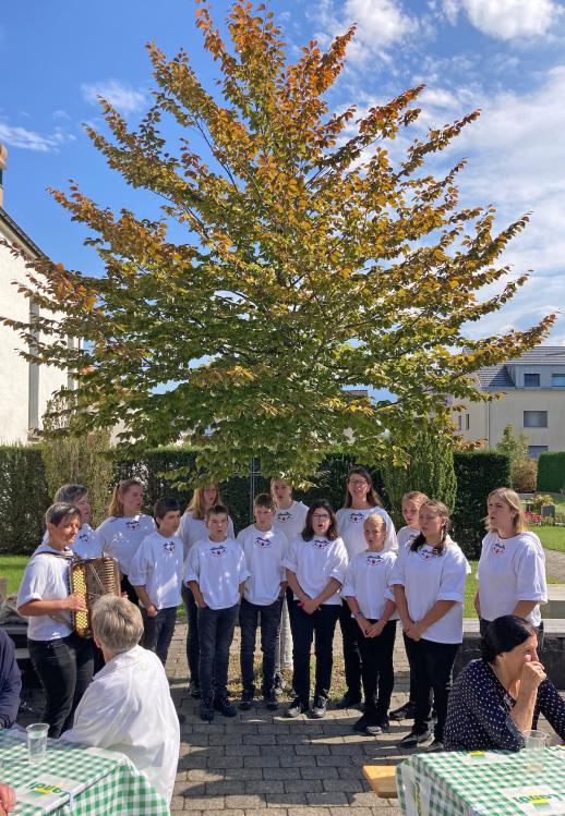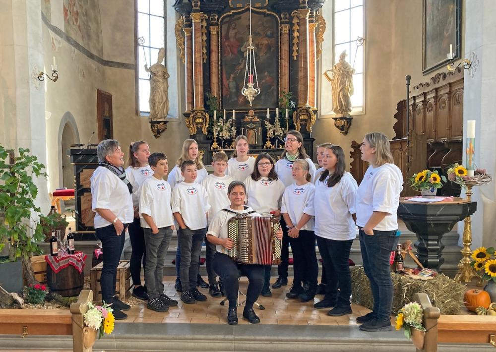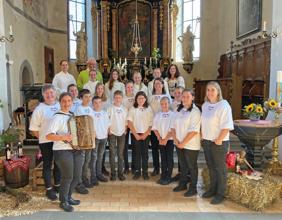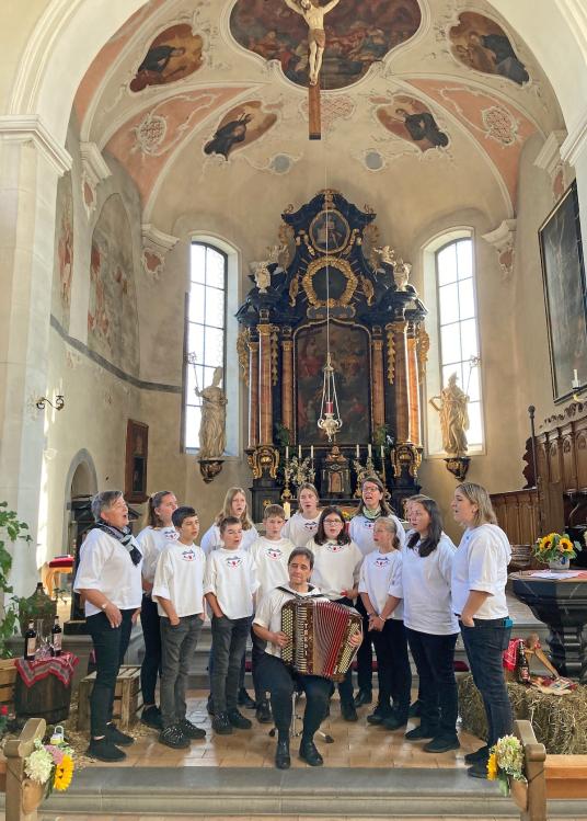 Die Jungjutzer (Ü12) am Mythen haben uns während des Gottesdienstes, zelebriert von Hans Mathis, mit ihrem Gesang erfreut. Unter der Leitung von Isabelle Heinzer und begleitet von Fränzi Imhof auf der Handorgel, haben sie unsere Kirche mit ihren jugendlichen Stimmen eindrücklich erfüllt.