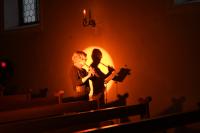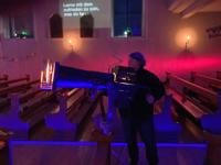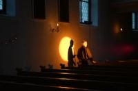 Am Freitagabend, 26. September haben wir einen ganz besonderen Gottesdienst gefeiert. Unter dem Thema Loqui Lux (sprechendes Licht), hat der Lichtkünstler Mark Ofner unsere Kirche mit 9 Diaprojektoren ausgeleuchtet und mit verschiedenen Lichteffekten erfüllt. Die Dias dazu wurden von unseren grossen Minis zusammen mit ein paar Erwachsenen vorgängig selbst gefertigt. Bibelzitate und Sprüche, wie auch Kerzenschein und Weihrauch vervollständigten die meditative Stimmung während der Feier.
